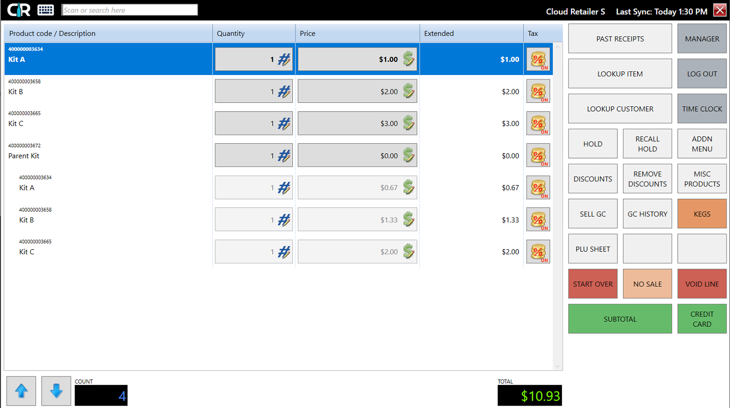 Beginning in version 2.10.9 of Cloud Retailer, we have created the ability to have a 'Kit' type item. This article will cover the basics of creating a kit and walk you through some details of the process.